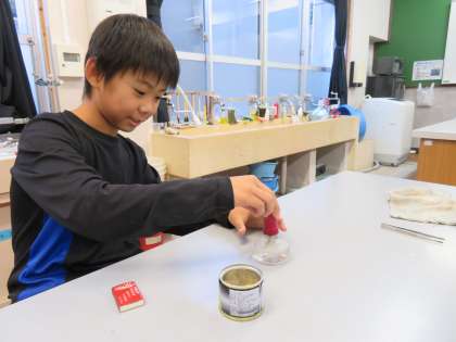 初めてマッチやガスコンロを使ったけど,上手に火をつけたり消したりしていました。