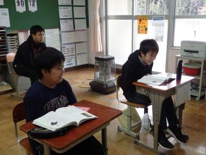 国語で,狂言を通して昔の人の感じ方にふれる学習をしています。