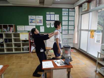 身体計測と合わせて姿勢の検査もありました。