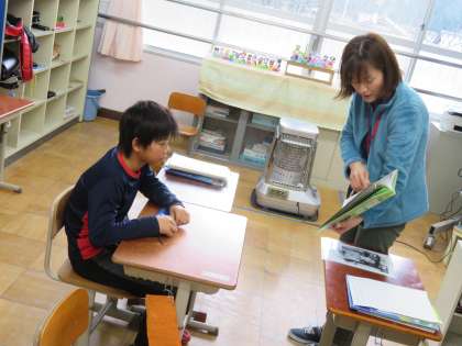 「こんな本もあるよ。」と,国語に関連した本の紹介を児童にしていただきました。