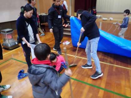 しめ縄づくりの後片付けでは,みんな,自分のできる事を考えて協力していました。