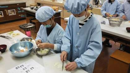 今日は,家庭科の学習で,調理実習をしました。