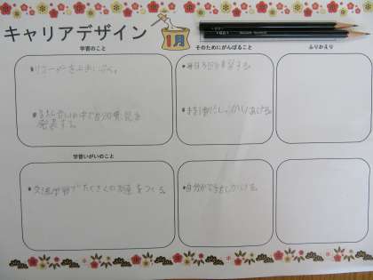 始業式での校長先生のお話を受けて,「3学期のキャリアデザイン」について児童と話し合いました。