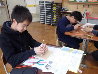 針金の心材をくねくねと動かしながらポーズを決めたり,立たせる位置を考えたりしていました。