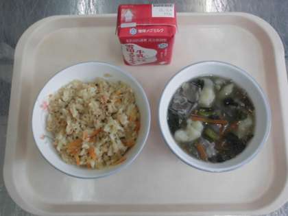 麦ごはん 牛乳 ツナそぼろ丼(具) すいとん