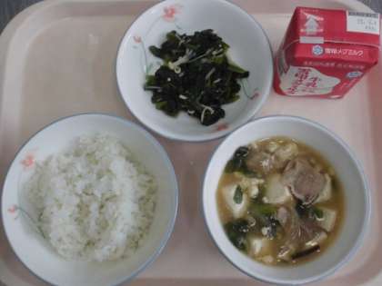 麦ごはん 牛乳 豚肉ととうふのくず煮 ほうれん草の煮びたし