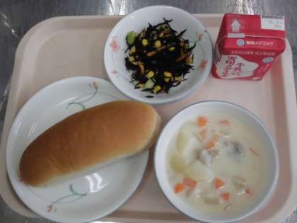 コッペパン(国内産小麦100%) 牛乳 豆乳のクリームシチュー ひじきのソテー