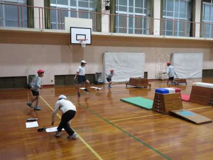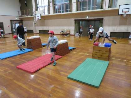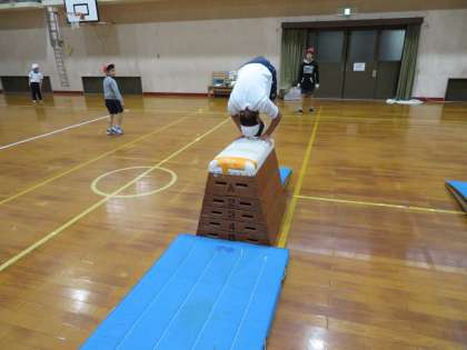 とびばこでは,開脚とび・かかえこみとび・台上前転を,自分のレベルに合わせて練習していきました。