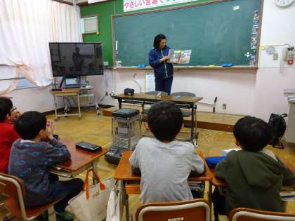 「おとうふやさん」という本の読み聞かせをしていただきました。豆腐がどのようにできるのかや,豆腐がおあげやひろうすになる様子などがわかりやすかったです。