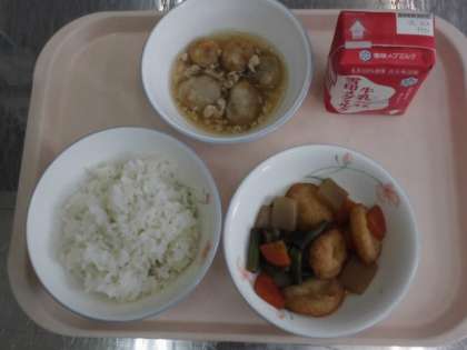 麦ごはん 牛乳 平天の煮つけ 揚げ里いものあんかけ