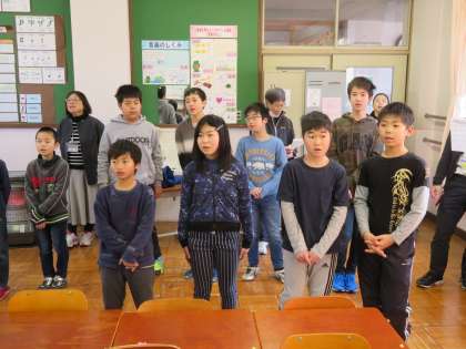 朝の時間に,全校で「スマイル・アゲイン」の合唱練習を行いました。