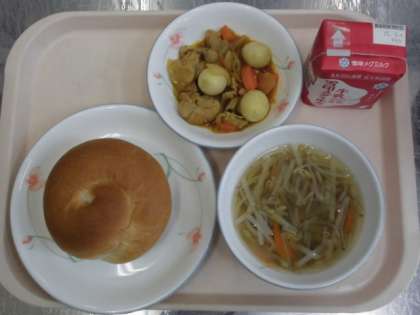 バターうずまきパン 牛乳 鶏肉とうずら卵のスパイシーいため ミーフンスープ