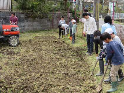 4・6年生は,地域の方のご協力により「田起こし」を行いました。