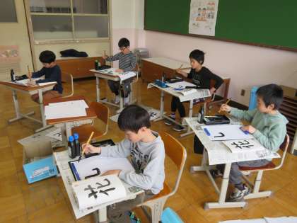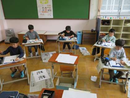 4年生は,今学期初めての「書写」を行いました。今日の題材は『花』。