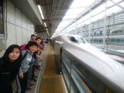 お見送りありがとうございました。バスは少し遅れましたが,無事京都駅に到着。新幹線に乗り込みます。