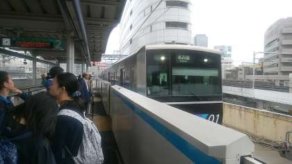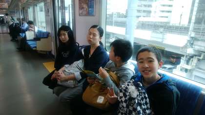 この修学旅行ではいろんな乗り物に乗ります。京都バス、地下鉄、新幹線、名鉄、次は金城埠頭行きあおなみ線です。この後、名古屋地下鉄の2路線も利用します。