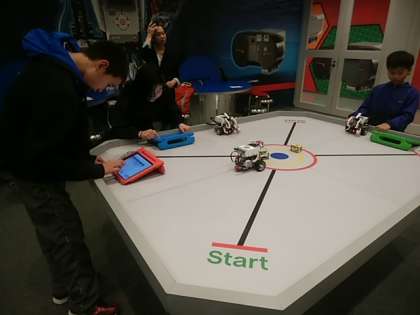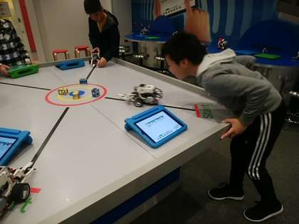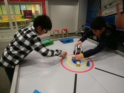 プログラミングをしてロボットにミッションを与えて、思うように動かそうとしています。何度もチャレンジして上手くクリアできるようになってきました。