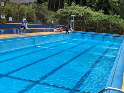 いよいよプール開きです。1,2年生の水遊びが始まりました。保護者と児童,教職員でピカピカに磨きあげたプールでの学習は,とても気持ち良さそうでした。