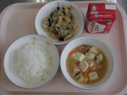 ごはん 牛乳 鶏肉ととうふのくず煮 もやしの煮びたし