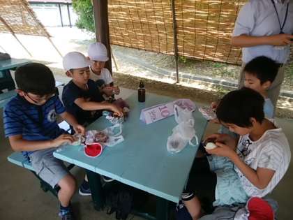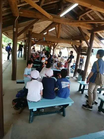 みんなお腹がすいているので、入所式の前に昼食です。東屋は風がとおりさわやかです。
