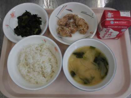 麦ごはん 牛乳 鶏肉のからあげ ほうれん草のおかか煮 みそ汁
