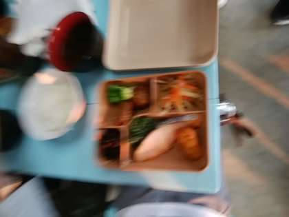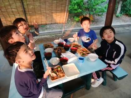 夕食の時間です。夕日に照らされ、爽やかな風をうけながら、いただきます!
