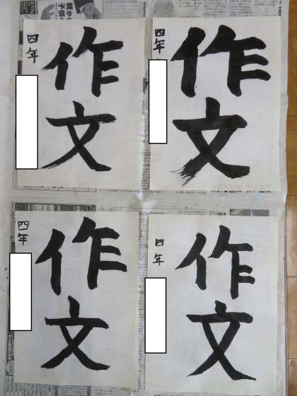 今日の3校時,4年生の書写の時間に『作文』という字の練習を行いました。静かな雰囲気の中で,姿勢正しく練習をした後,2〜3枚半紙に書いてみました。