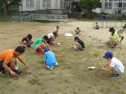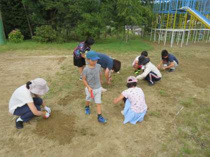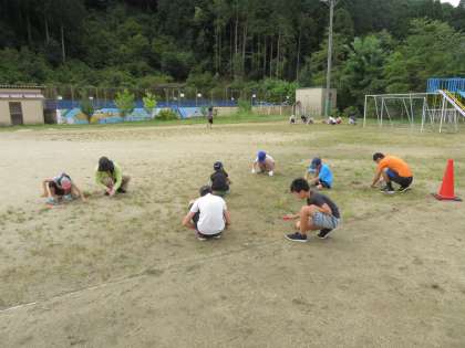 今日は朝の早い段階で「高音注意報」が出ていましたので,涼しい朝の時間の間に,児童と教職員で「草抜き」を行いました。