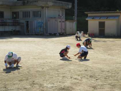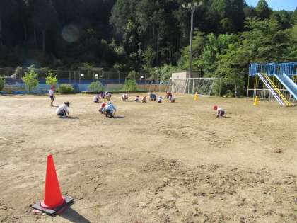 今朝も児童と教職員で,朝の涼しい間に草抜きをしました。昨日の環境整備や皆さんのおかげで,運動場が緑一色だったのが,元の運動場の色にほぼ戻ってきました。