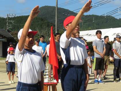 開会式から始まり,各学年や地域の種目を順調に行いました。どの子も全力を出し切り,楽しい運動会になりました。(結果は今年は赤組が勝ちました。)