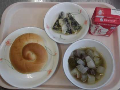 バターうずまきパン 牛乳 とびうおの香草あげ ポトフ