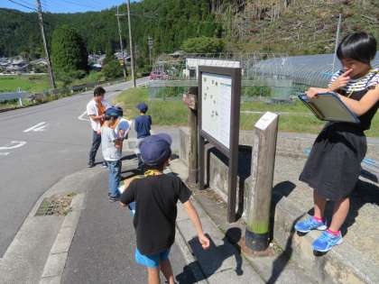 今日の4校時,4年生は社会科の学習で,校区の安全に関する標識などを探検しに行きました。