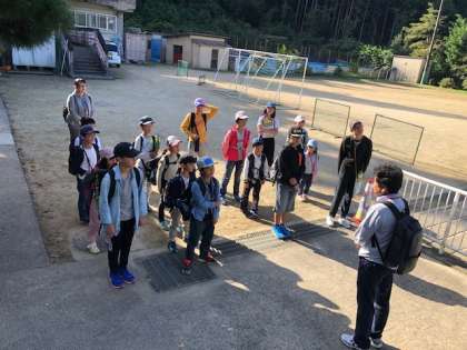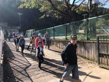秋晴れの空の下、自分のめあてを各自が声に出して確認し、出発しました。