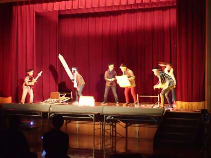 今年は,劇「世界を,自分を,変える『一歩』」を演じました。一歩を踏み出すことの大切さを表現しようと,がんばっていました。