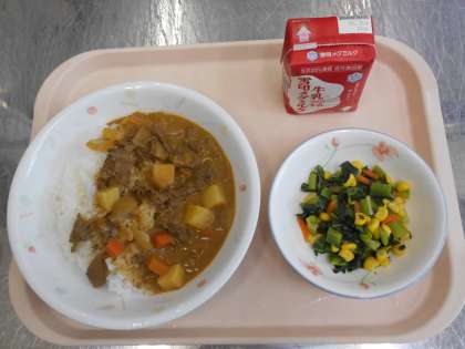 3学期最初の給食です。子ども達に大人気のカレーだったので