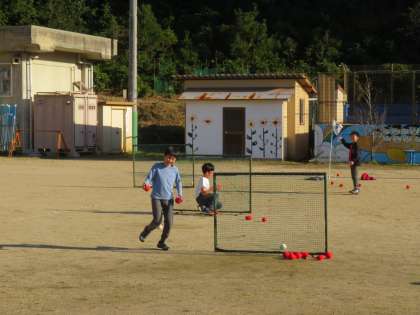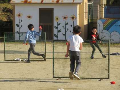 運動会の玉入れで使う玉を雪の代わりにし,雪合戦をしていました。