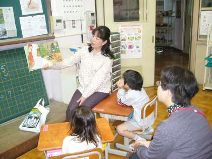 火曜日は,読み聞かせのボランティアです。梅雨の雨の日のお話をしていただきました。