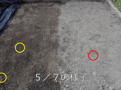 花だんの左側は黒いシートをかぶせていた方です。