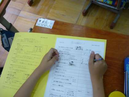 保健の日には、すこやか点検をしています。寝た時刻、起きた時刻、朝食、歯みがきなど生活を振り返り、自分の生活の仕方をよりよくするためのめあてを持つことへつながるものと思います。