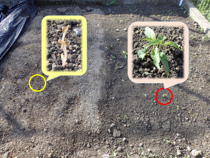 今朝,見てみると,左側で観察をしていた草がかれていました。