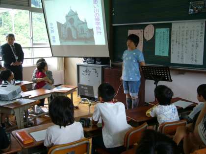 日曜参観1校時目は、全校での静原タイムです。2名の発表でした。しっかりとみんなのほうを見て話していました。