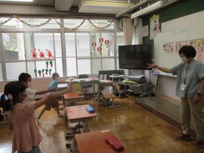 1年生はみんなで楽しくじゃんけんをし,2年生はみんなでポーズをとりながら,音楽の学習に取り組んでいました。本格的な再開はもうすぐなので,これからもしっかりと関係を築いていきたいと思います。