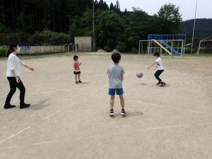 この日は,保健の先生や2年生と一緒に天大中小をして遊んでいました。
