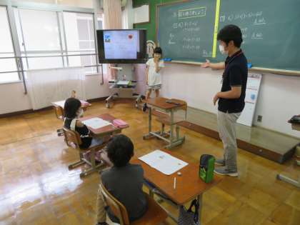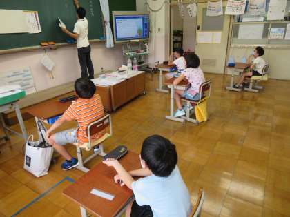3年生は,算数で「図を使って考えよう」と言う学習に取り組み,自分が考えた図を前に出て説明し合っていました。