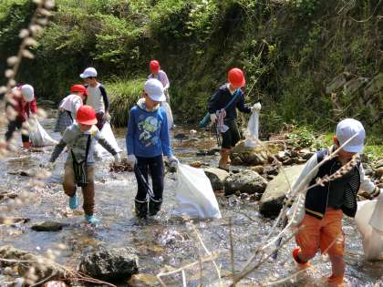 1,2時間目に行いましたが,朝から気温がぐんぐん上がり,どの子も汗びっしょりかいてごみを拾っていました。