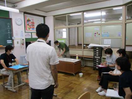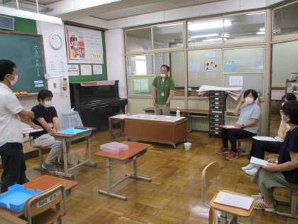 来週8日(月)から始まる給食に備えて,教職員で確認事項を共通理解する場をもちました。新型コロナウイルスの影響で,今までの方法とは異なるところがあるので,給食主任を中心に一つ一つ確かめていきました。