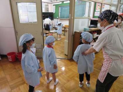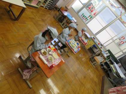 今年度初めての給食でした。特に1年生にとっては,小学校に入学して最初の給食で,慣れない事ばかりなので戸惑っていましたが,美味しそうに食べていました。