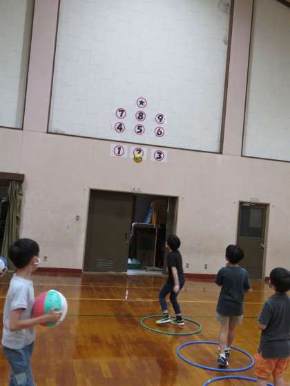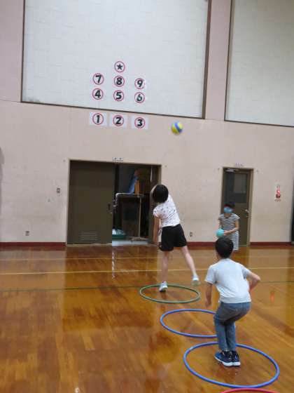 児童は,ドッジボールなどで的あてをしたり,キャッチボールをしたりしていました。