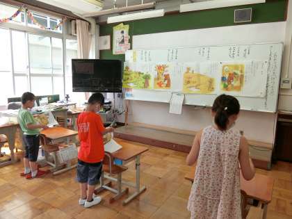 この後,「はなの みち」を音読しましたが,「・・・。」のところを本当にくまさんが話しているように読もうと頑張ることができました。