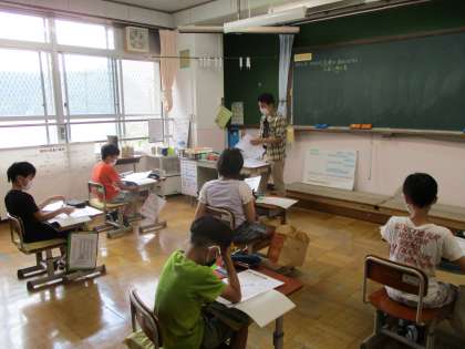 5年生は社会科で,日本の気候について学習していました。月平均の気温と降水量のグラフを読み取り,6つある気候の特徴を熱心に調べたり考えたりしていました。